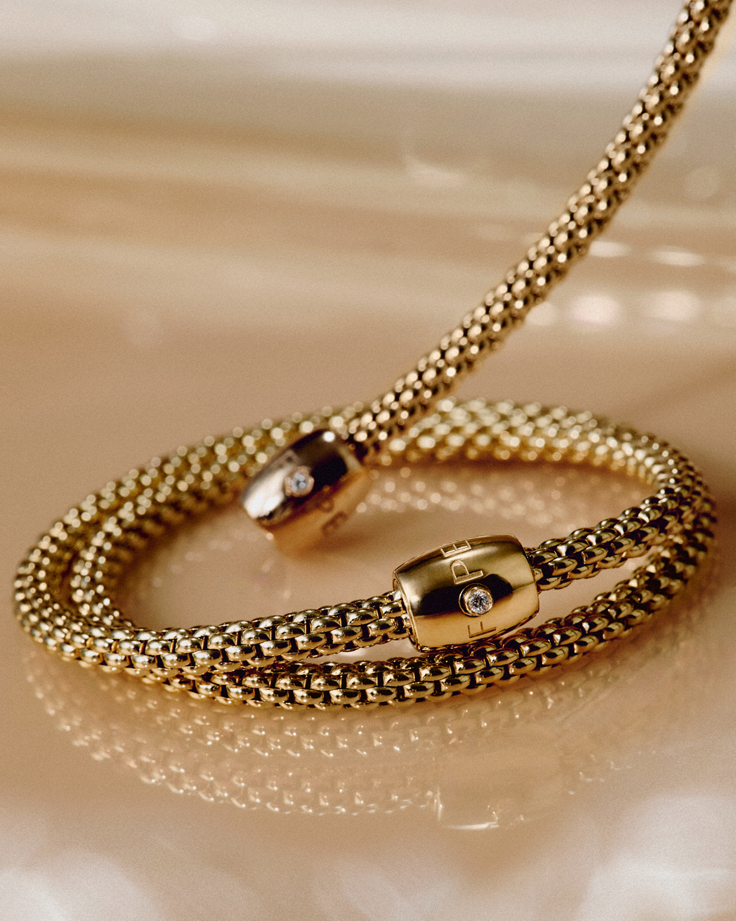 Zu den bedeutendsten Innovationen von FOPE gehören das unverwechselbare, 1980 eingeführte Gliederwerk Novecento, das weiche Geflecht aus Gold, dessen Komponenten ohne Schweißungen miteinander verkettet werden, und das patentierte System Flex’it, das seit 2007 mit mikroskopisch kleinen Federn aus 18 Karat Gold, die in das Gliederwerk eingesetzt sind, dem Schmuck Flexibilität verleiht.