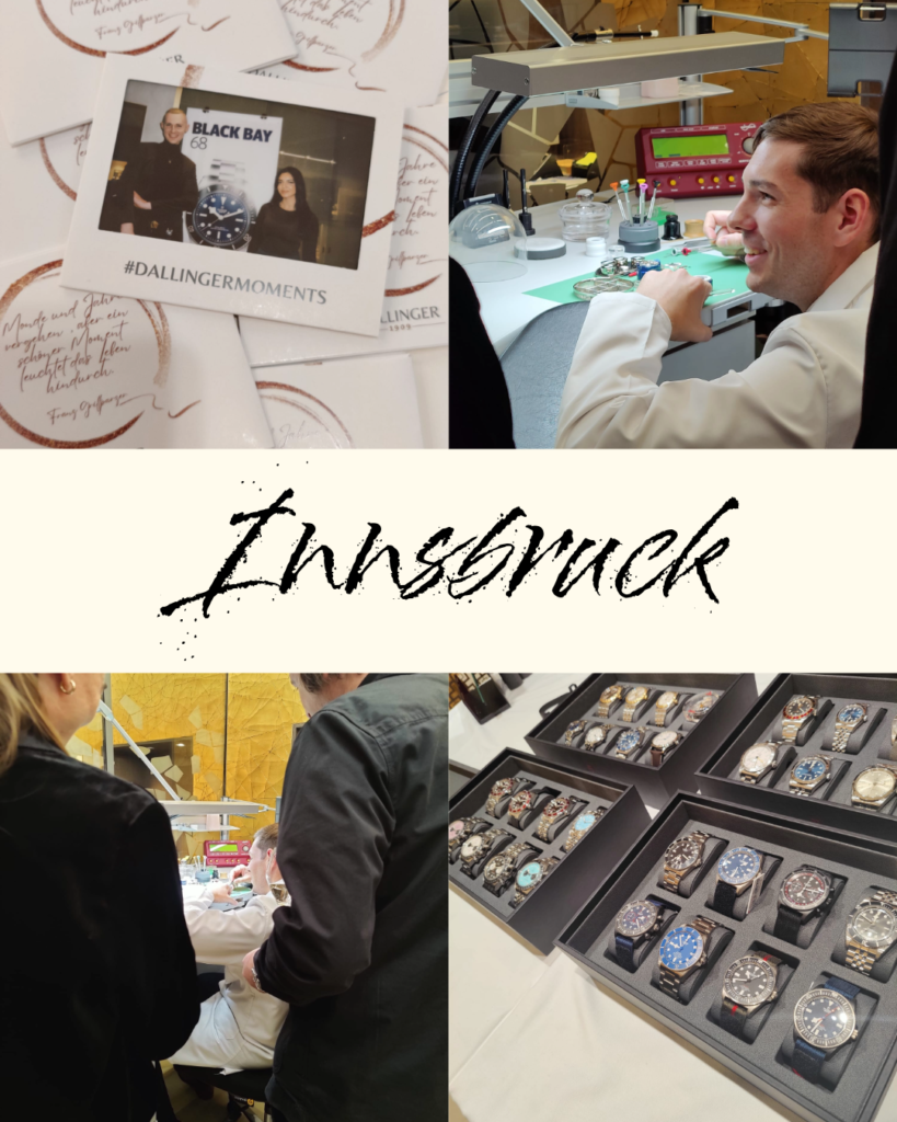Fazit – Mit den Veranstaltungen in Innsbruck und Salzburg zeigte Juwelier Dallinger einmal mehr, wie vielfältig die Welt von Tudor erlebbar gemacht werden kann – mal technisch-präzise und lehrreich, mal genussvoll und atmosphärisch. Zwei Städte, zwei Formate, ein gemeinsamer Nenner: Leidenschaft für Qualität, Handwerk und Zeitkultur.